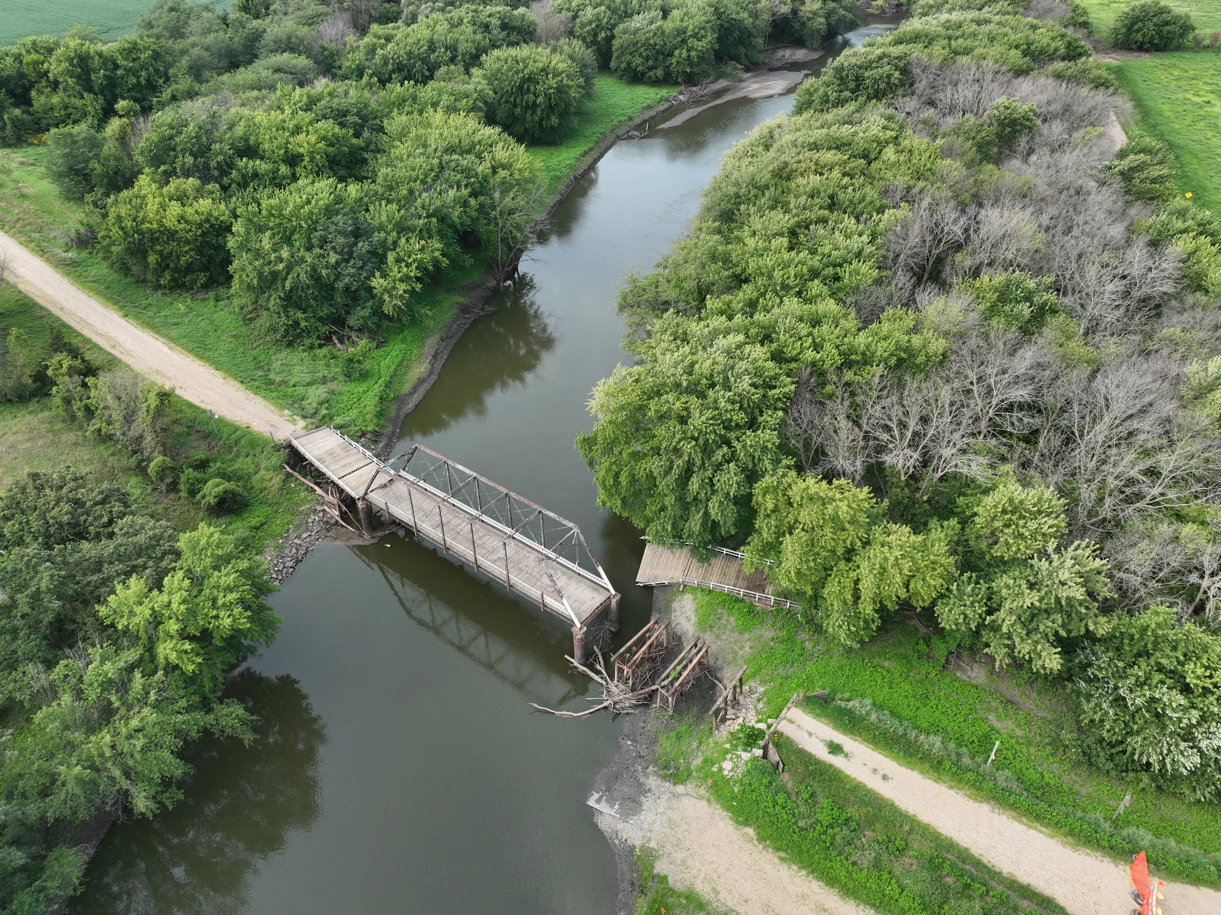 OBRIENExplore the intriguing history and excellent recreation at Burned Out Bridge, where remnants of the past serves as a reminder of the river's role in Iowa's transportation history while providing modern recreational opportunities. This access site is on river right and directly across river from the Prairie Heritage Center Access.
