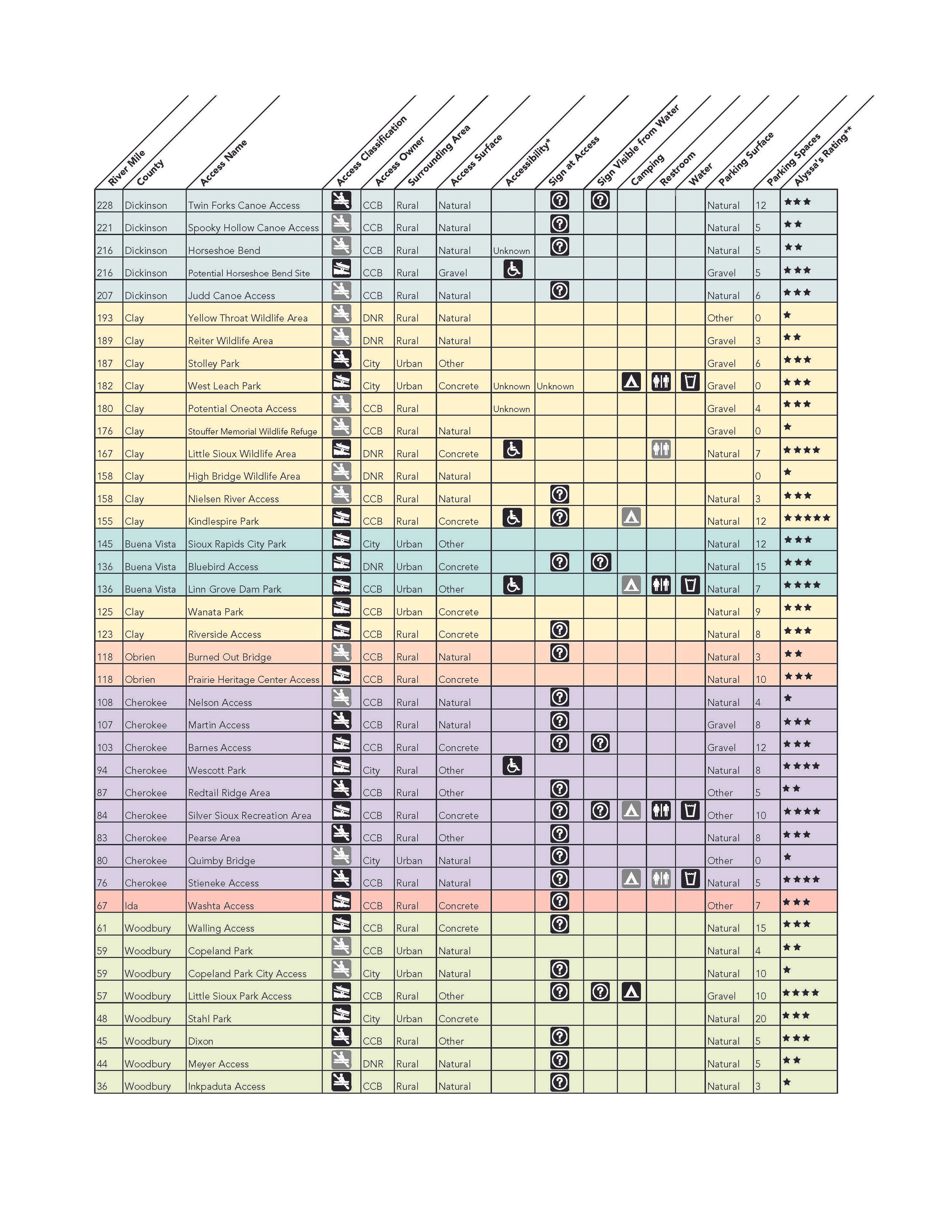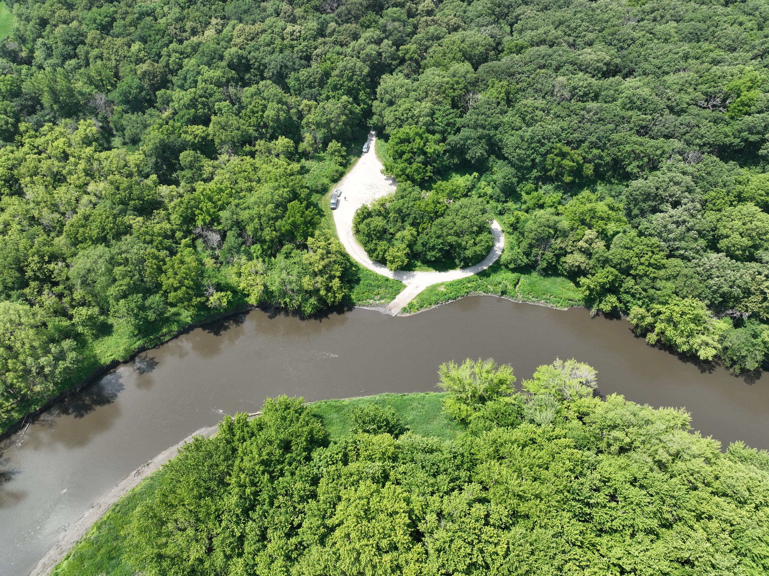 CHEROKEEWalk-in or bushwack yourway to this river access site just after the 450th street bridge. Must hike up rocky bank to get to small parking area.