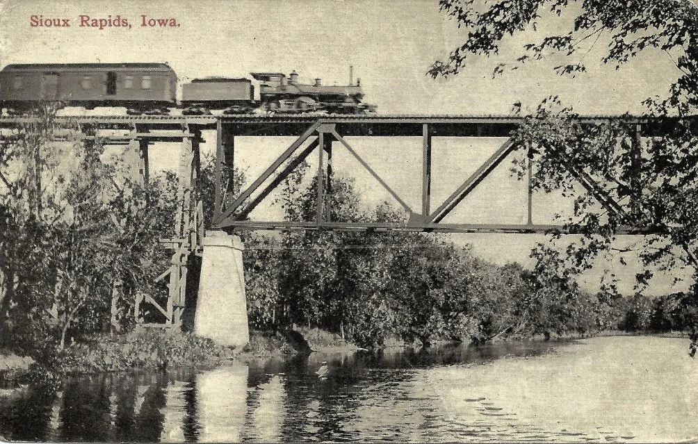 The Railroad reached Sioux Rapids, Iowa in 1869 when the Dubuque and Sioux City Railroad was completed.