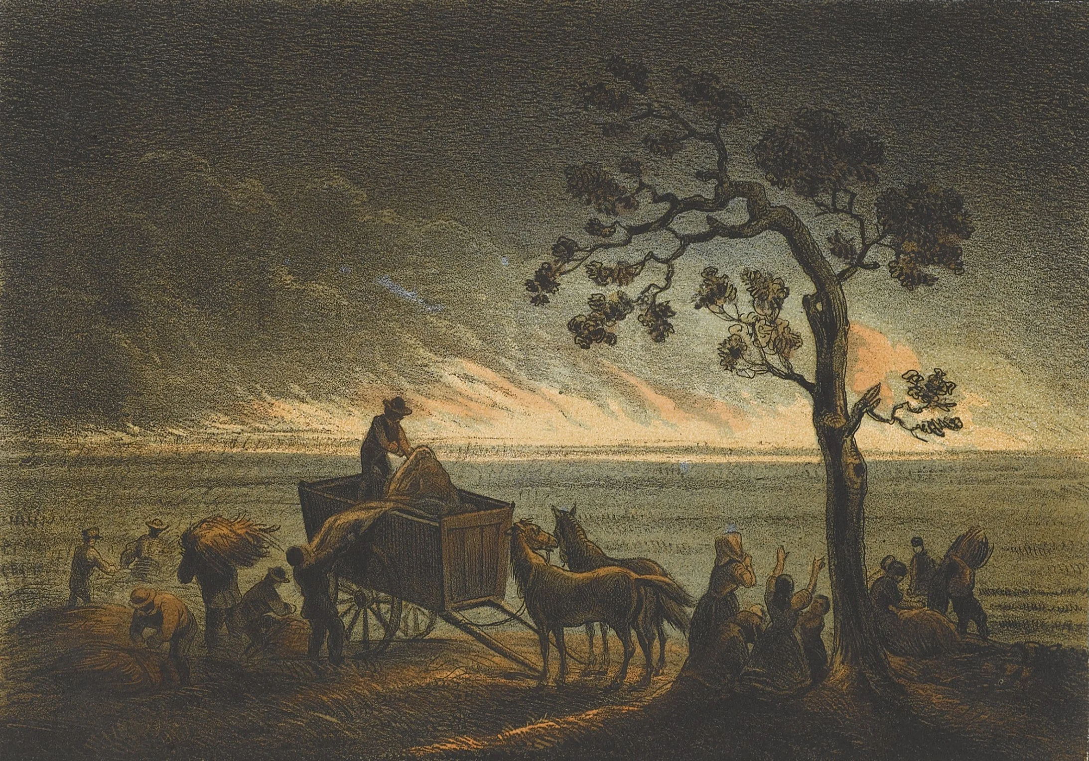 An illustration of a prairie fire causing destruction on the plains.