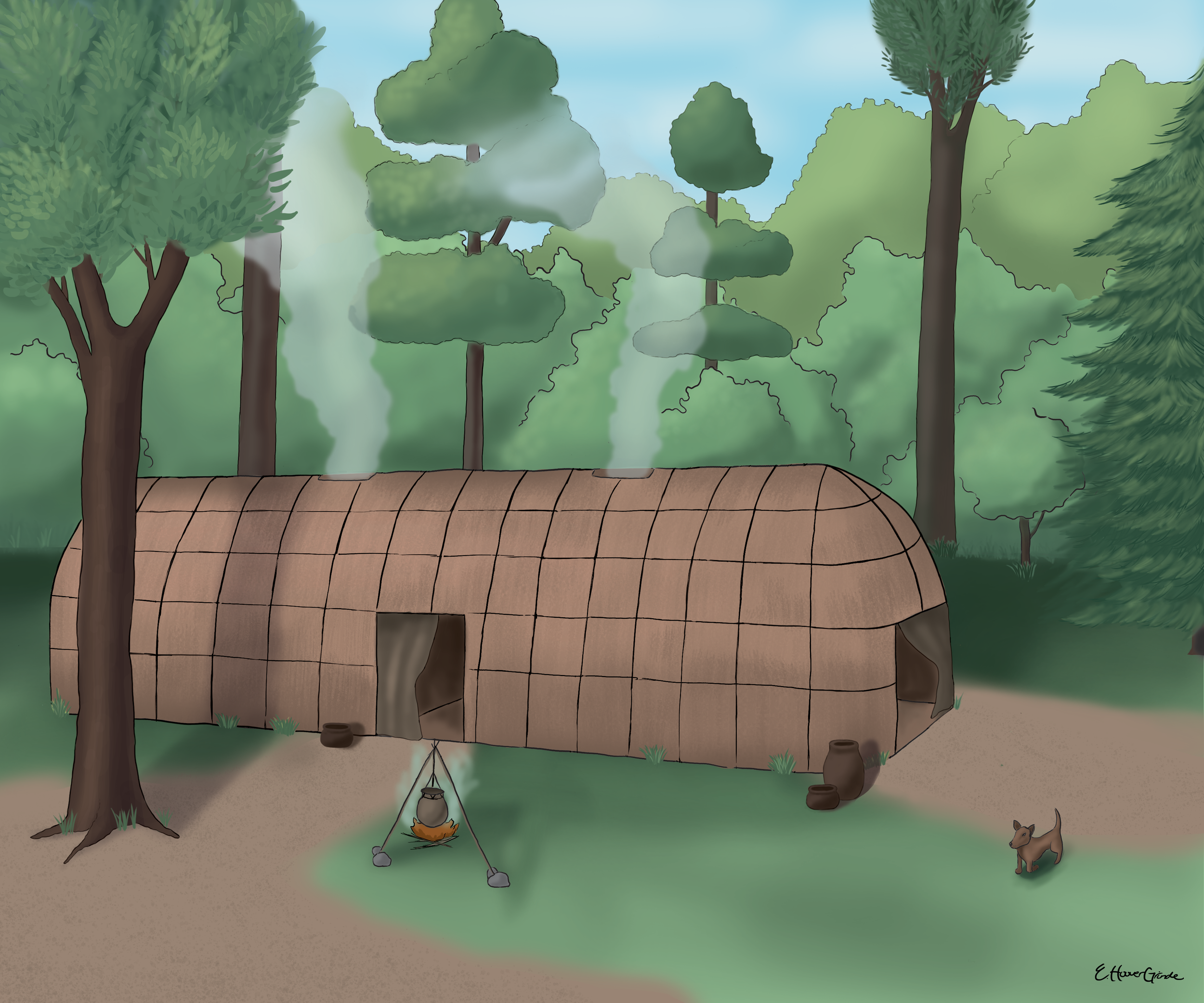 An illustration of a permanent structure like the one excavated at the Rainbow site in Plymouth County.