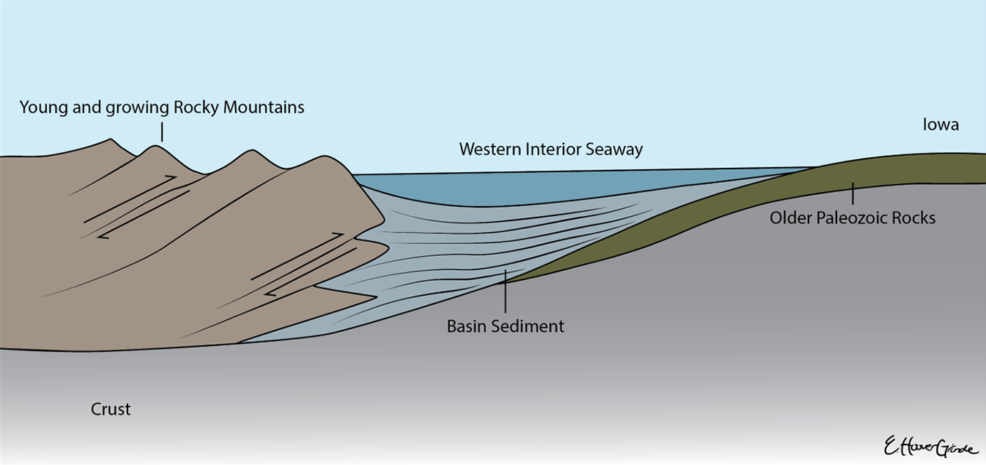 Beneath the glacial deposits of northwestern Iowa lies over 1,000 feet of sedimentary rock that preserves the region’s deep geological history. These rocks, mainly Cretaceous-age sandstone and mudstone known as the Dakota Formation, formed about 100 million years ago when the Western Interior Seaway covered much of the Great Plains. Shifting sea levels repeatedly flooded and exposed Iowa, leaving a complex mix of marine and river sediments.