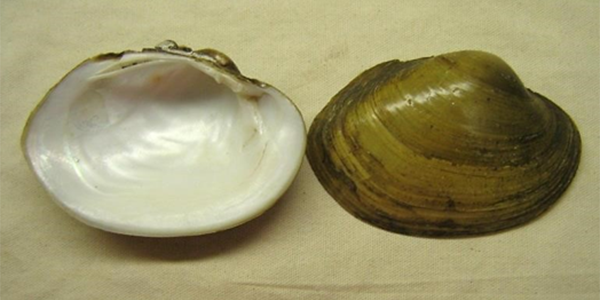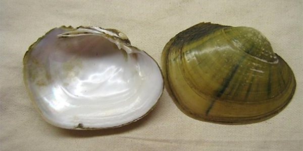 The most common freshwater mussel in the Little Sioux River is the Plains Pocketbook Mussel (Lampsilis cardium) Male (left) Female (right)